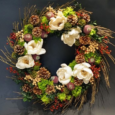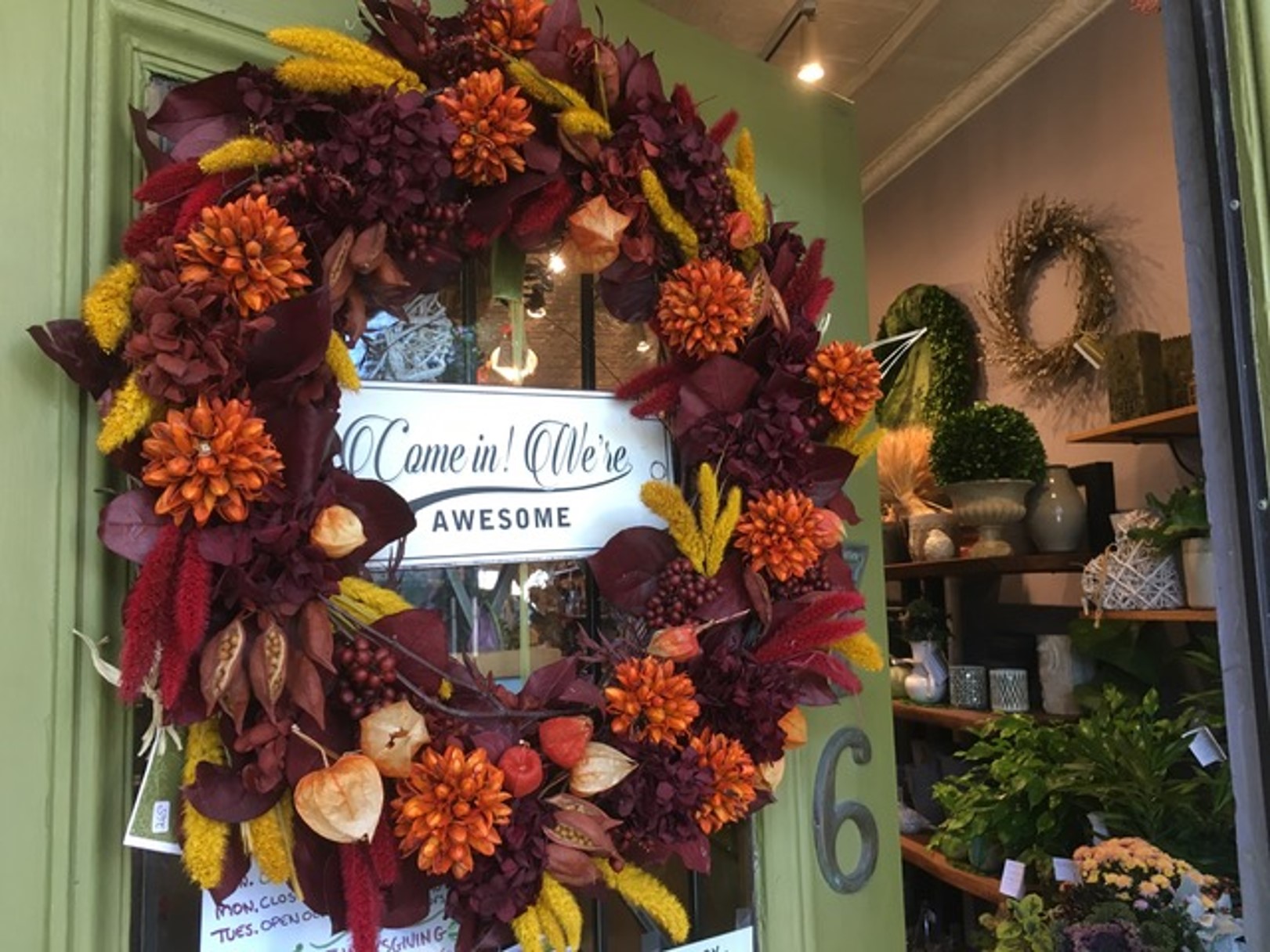 Lovely dried wreaths can be found in store or custom created for you. We create wreaths for each season and holiday to fit your door perfectly. Contact the store to arrange for a beautiful seasonal wreath for your front door today.